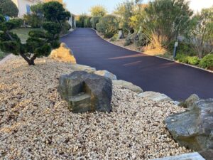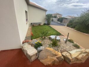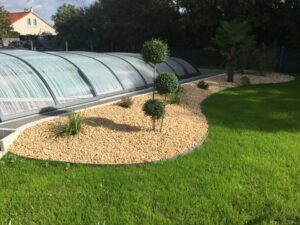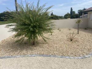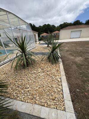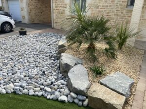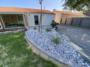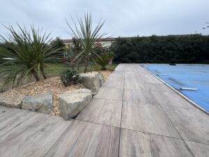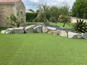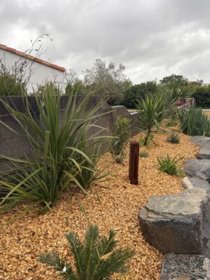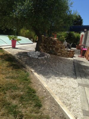 Pornic - Aménagement enrochement et paysagiste - massif de séparation piscine et parking