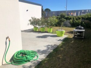 Terrasse béton drainant avec plantations Saint-Nazaire