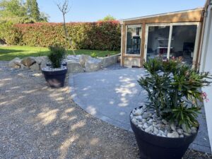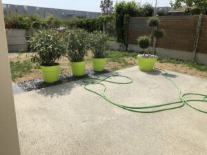 Terrasse béton drainant avec 1 ligustrum planté dans un pot