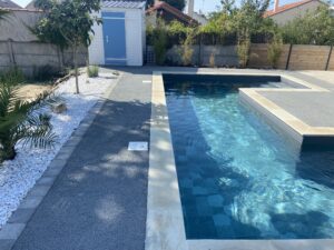 Pornic - Aménagement tour de piscine en béton drainant beige