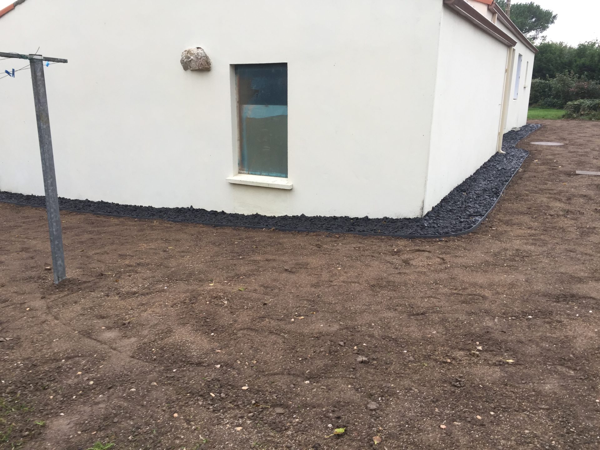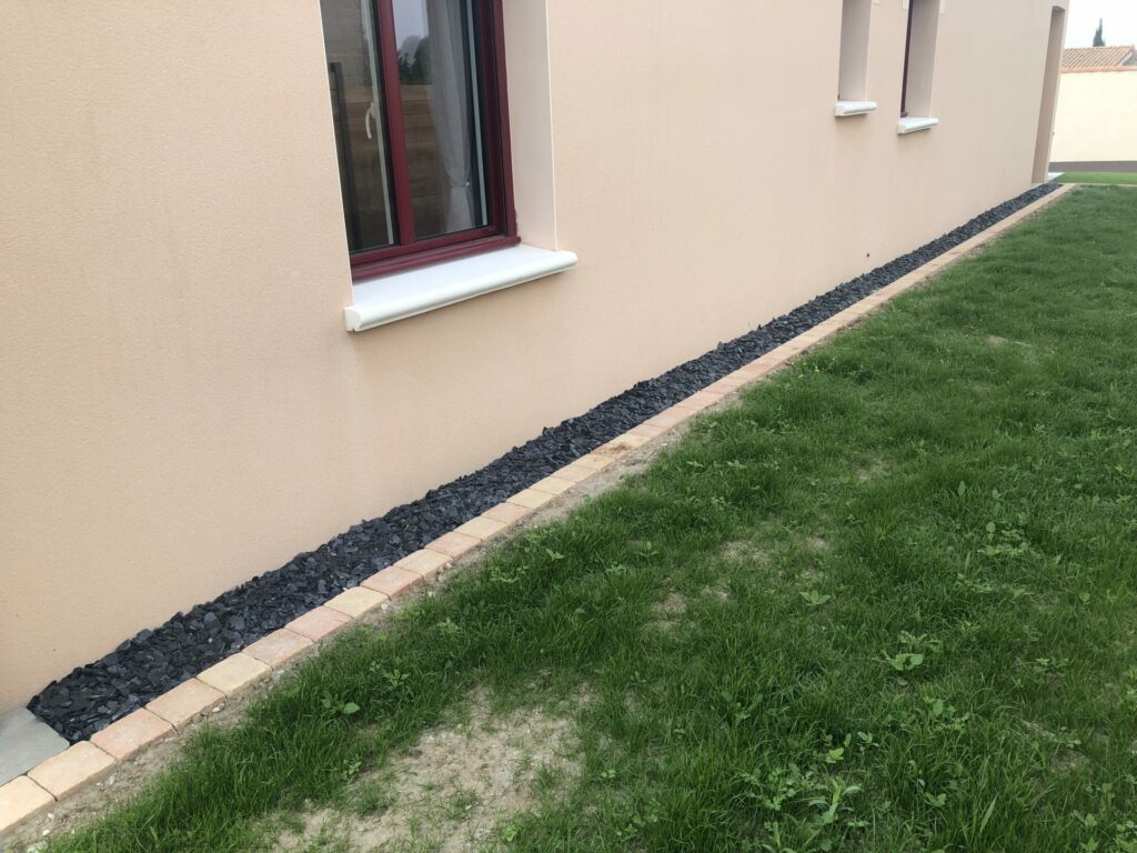 Cela permet d’une part d’assainir les fondations, après avoir procédé à quelques travaux nécessitant la pose d’un drain, en évitant une stagnation des eaux après de violentes intempéries, et d’autre part de protéger la partie basse de revêtement de votre maison des éclaboussures de terre ou bien d’herbes fraîchement coupées.