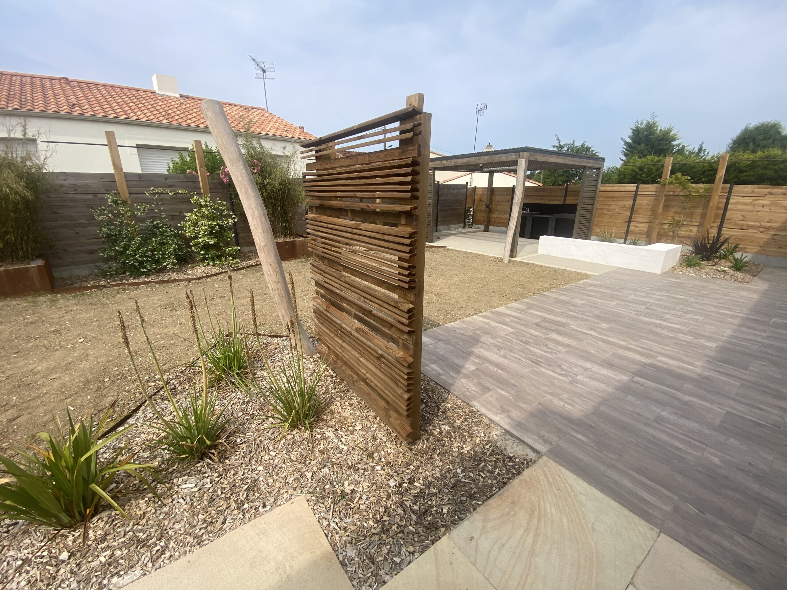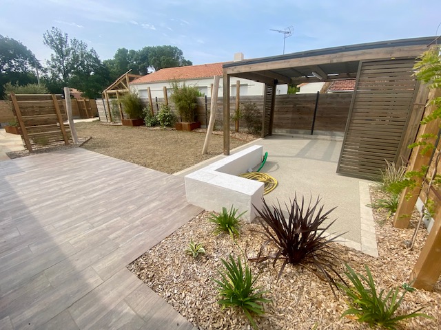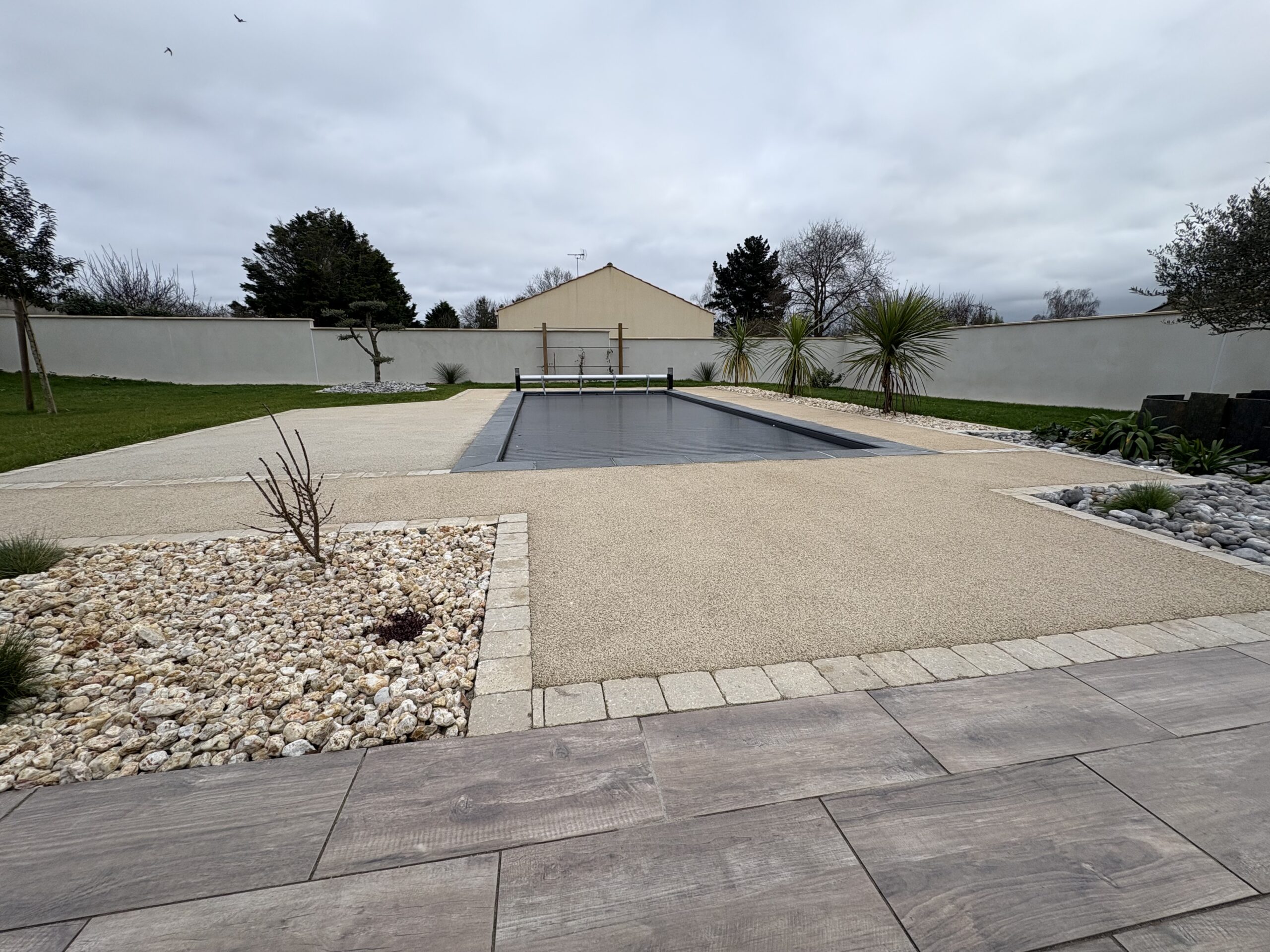 Il s’agit de l’ensemble des travaux d’aménagement paysager permettant de structurer, embellir et équiper un espace extérieur. Cela inclut :