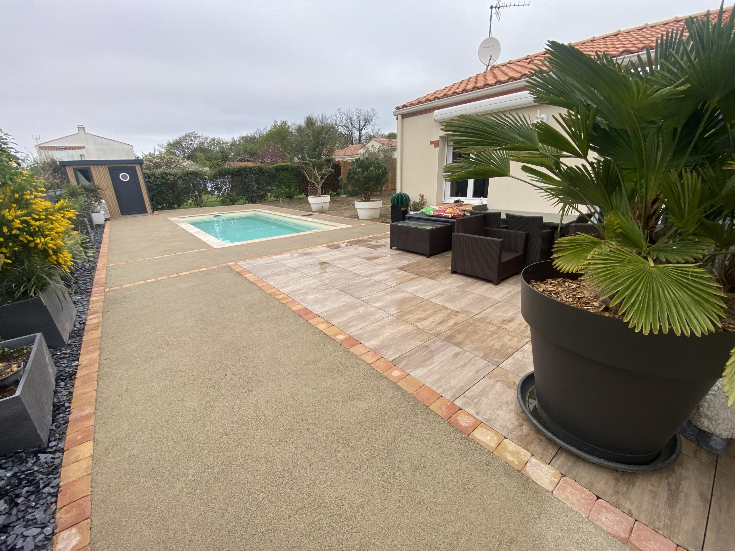- La pose de revêtements de sol (pavés, dalles, graviers, bois, sols jdm, enrobé de couleurs, béton drainant)