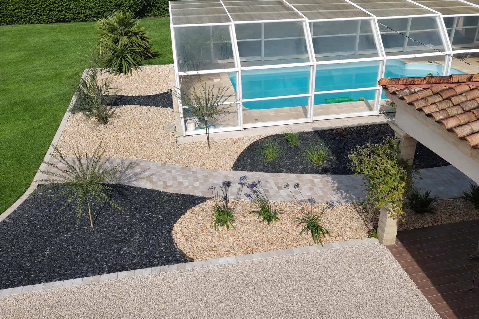 - Plantations et finitions : gazon semé, plantations d’arbustes, paillage, décoration minérale…