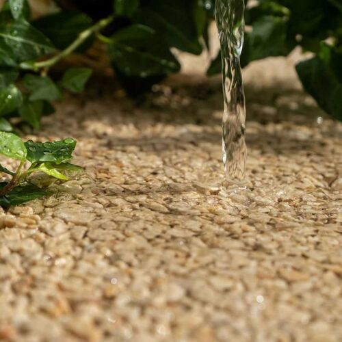 - Le nettoyage annuel : Un simple rinçage à l’eau claire de votre sol drainant pour éliminer les fines poussières.