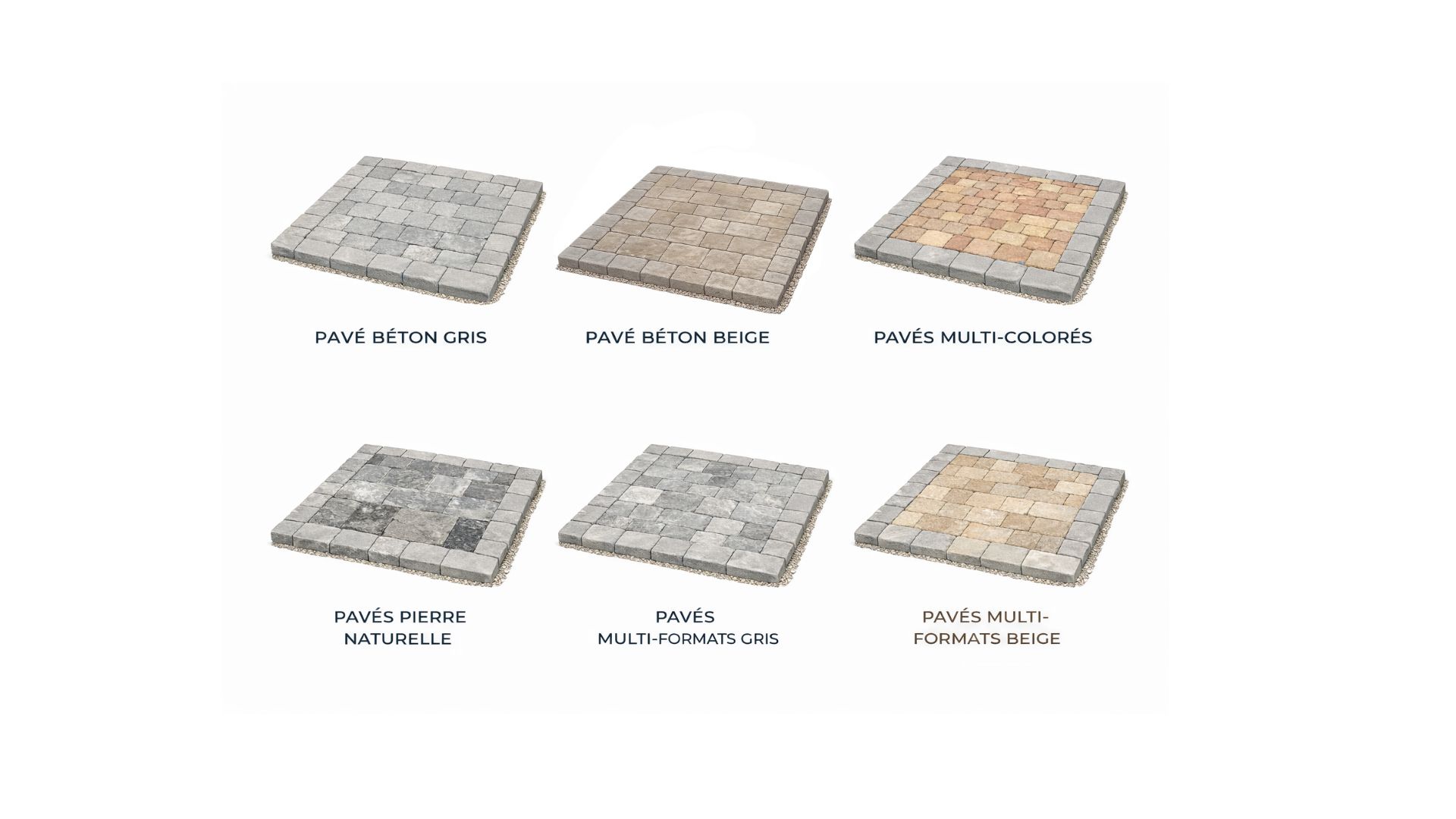 - Pavés en béton : économiques, disponibles en plusieurs teintes, parfaits pour les allées modernes, les entrées de garage ou les projets nécessitant un bon rapport qualité/prix.