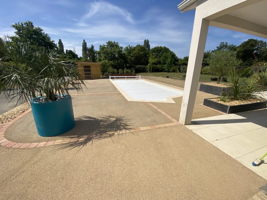 Pornic - Aménagement tour de piscine en béton drainant beige