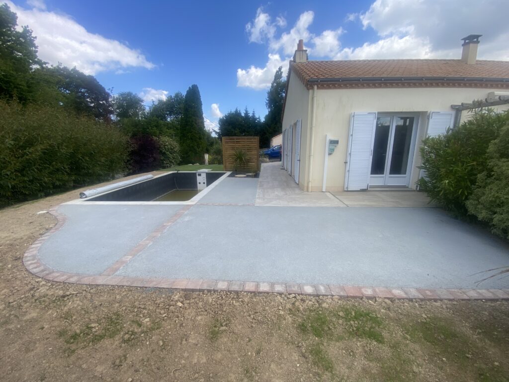 Terrasse en béton drainant autour d'une piscine - Machecoul