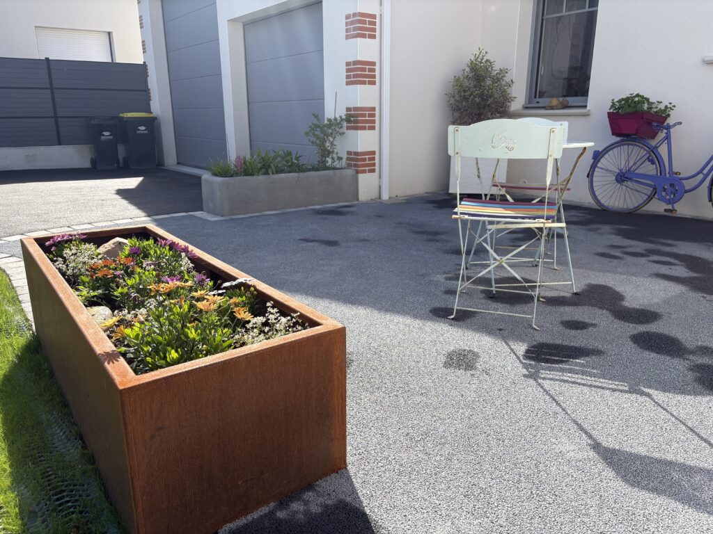 Béton drainant gris avec plantations - St Jean de Boiseau