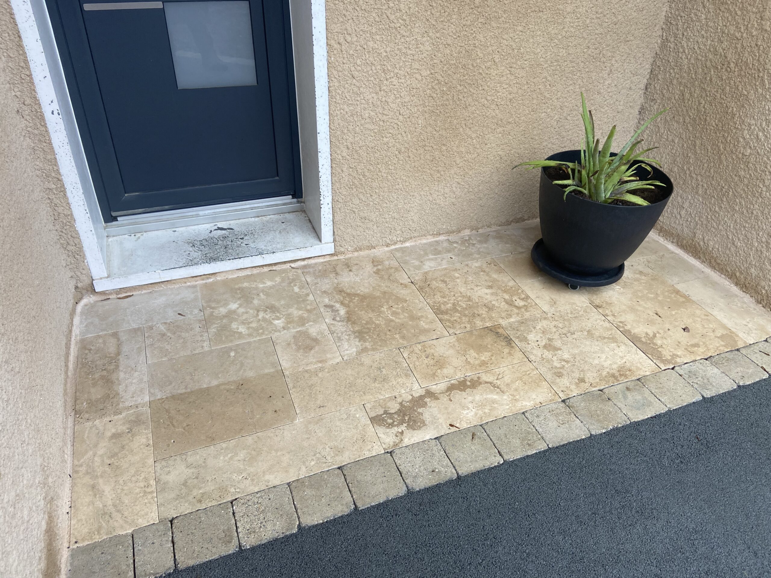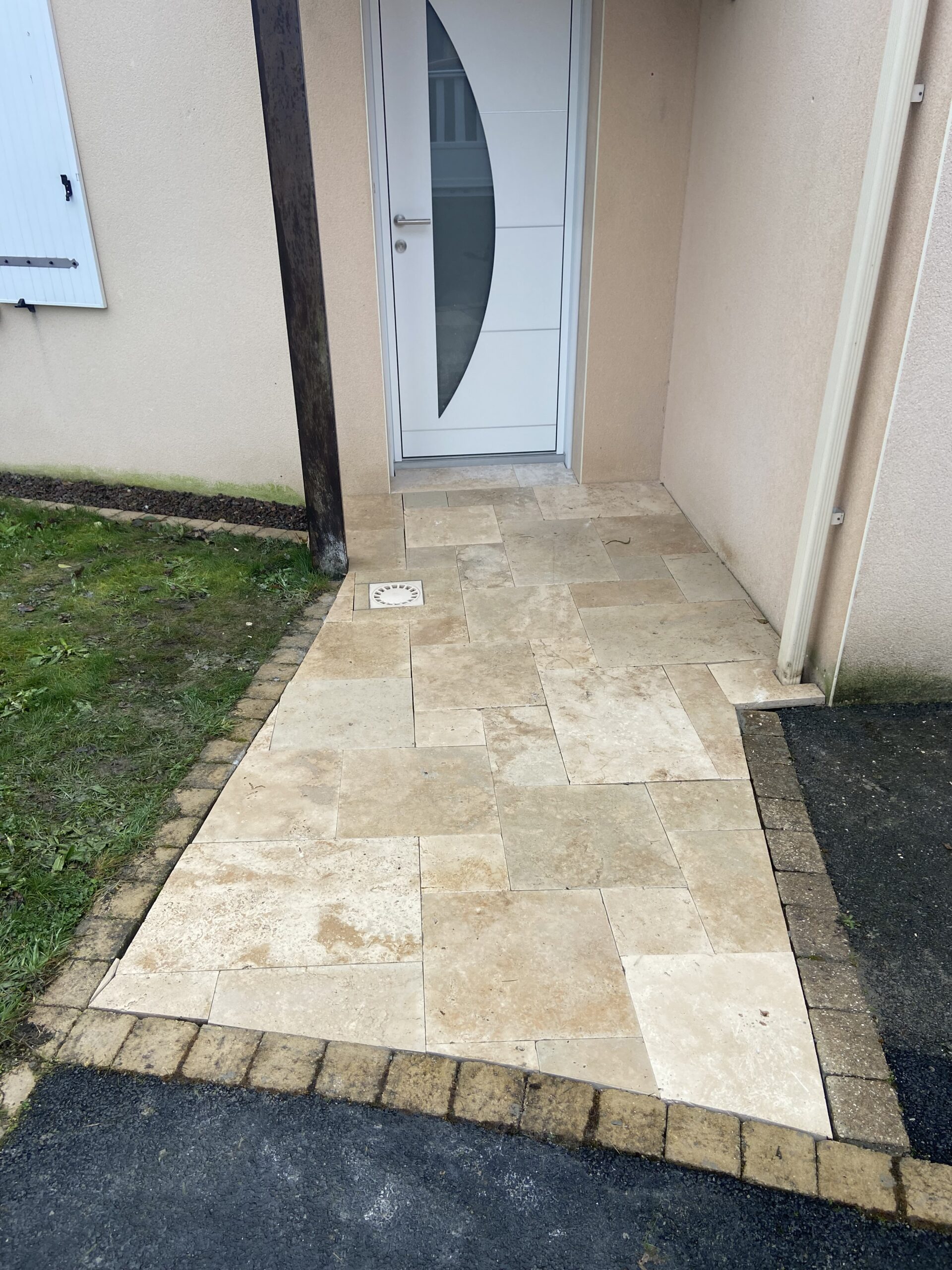 La Marne - dallage d'une entrée en multi-formats travertin