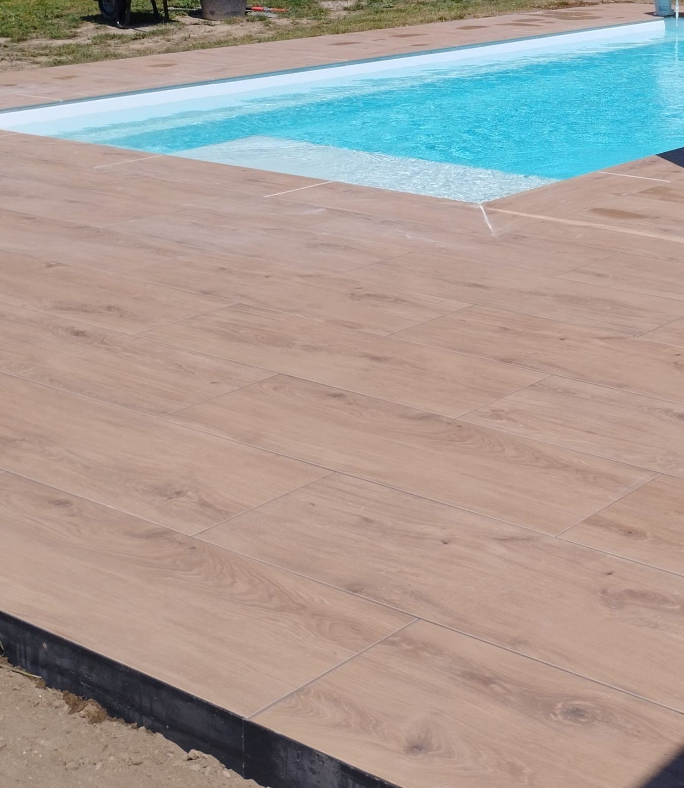 Nous proposons notamment des dalles imitant le bois qui sont parfaitement adaptées pour un tour de piscine ou bien une terrasse pour un effet hautement qualitatif, moderne, chaleureux et esthétique.
