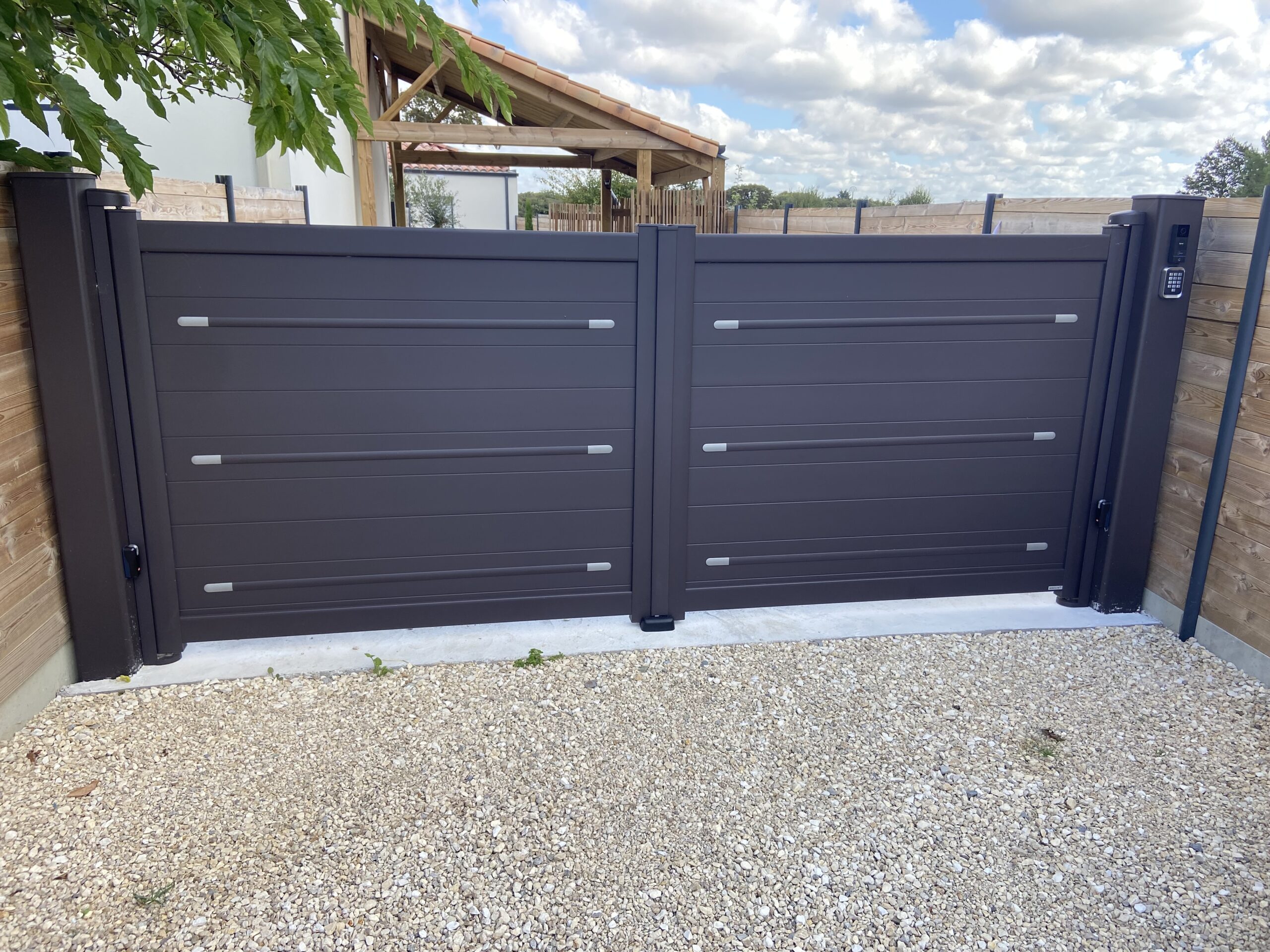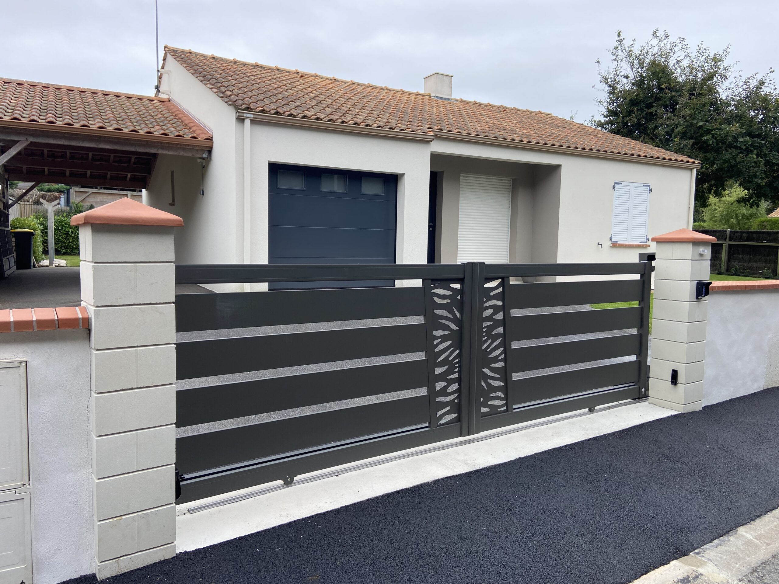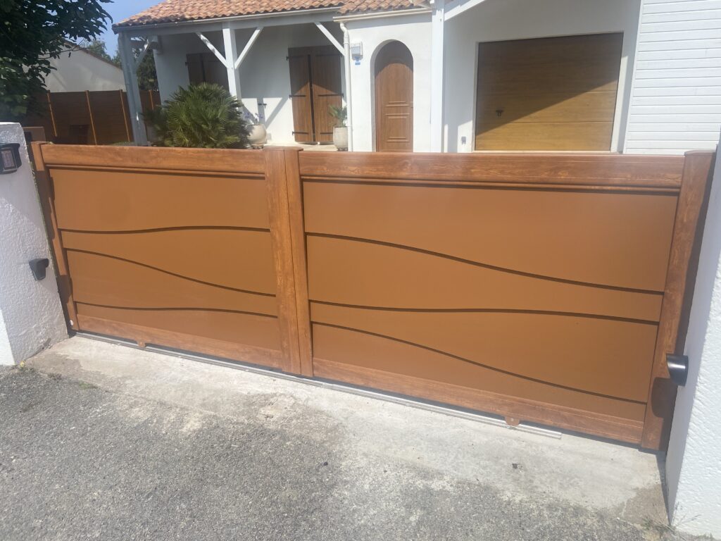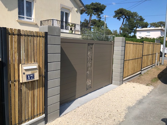 Portail marron avec panneau décoratif -Saint-Brévin-les-Pins