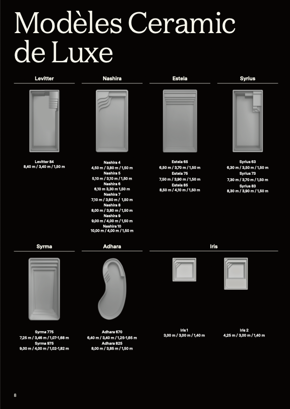 - Ceramic de Luxe est le choix de la technologie de pointe. C’est le bassin « blindé » par excellence, idéal pour ceux qui veulent la garantie structurelle la plus longue du marché.