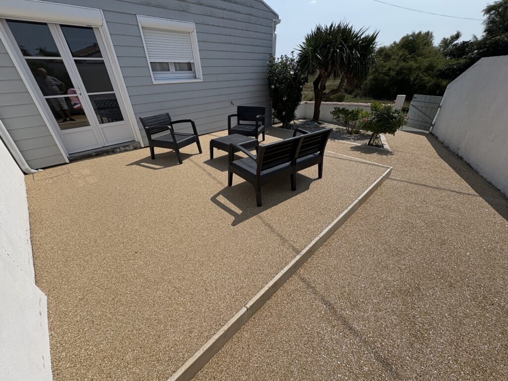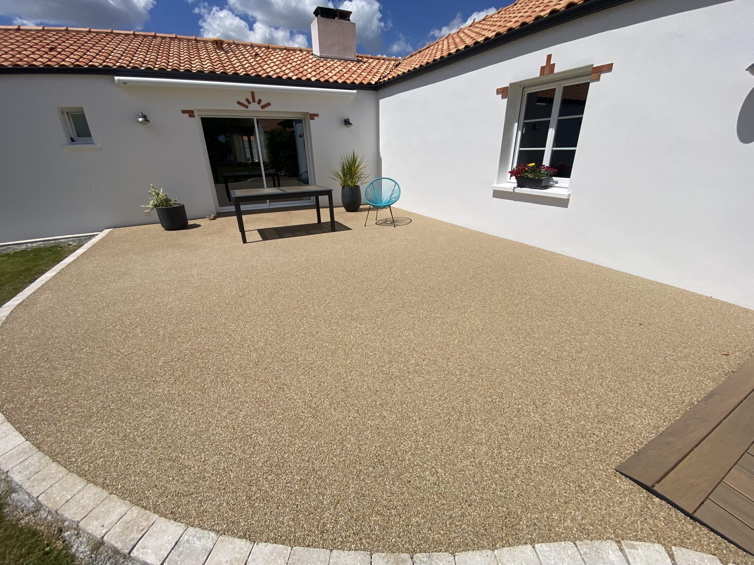 Sa couleur jaune clair/orangé permettant de limiter la formation d’îlots de chaleur, son aspect naturel avec un granulat libre sur 6 mm d’épaisseur et sa résistance aux passages VL et PL lui permettent d’allier esthétisme et praticité pour tous vos projets d’accès piétons et carrossables.
