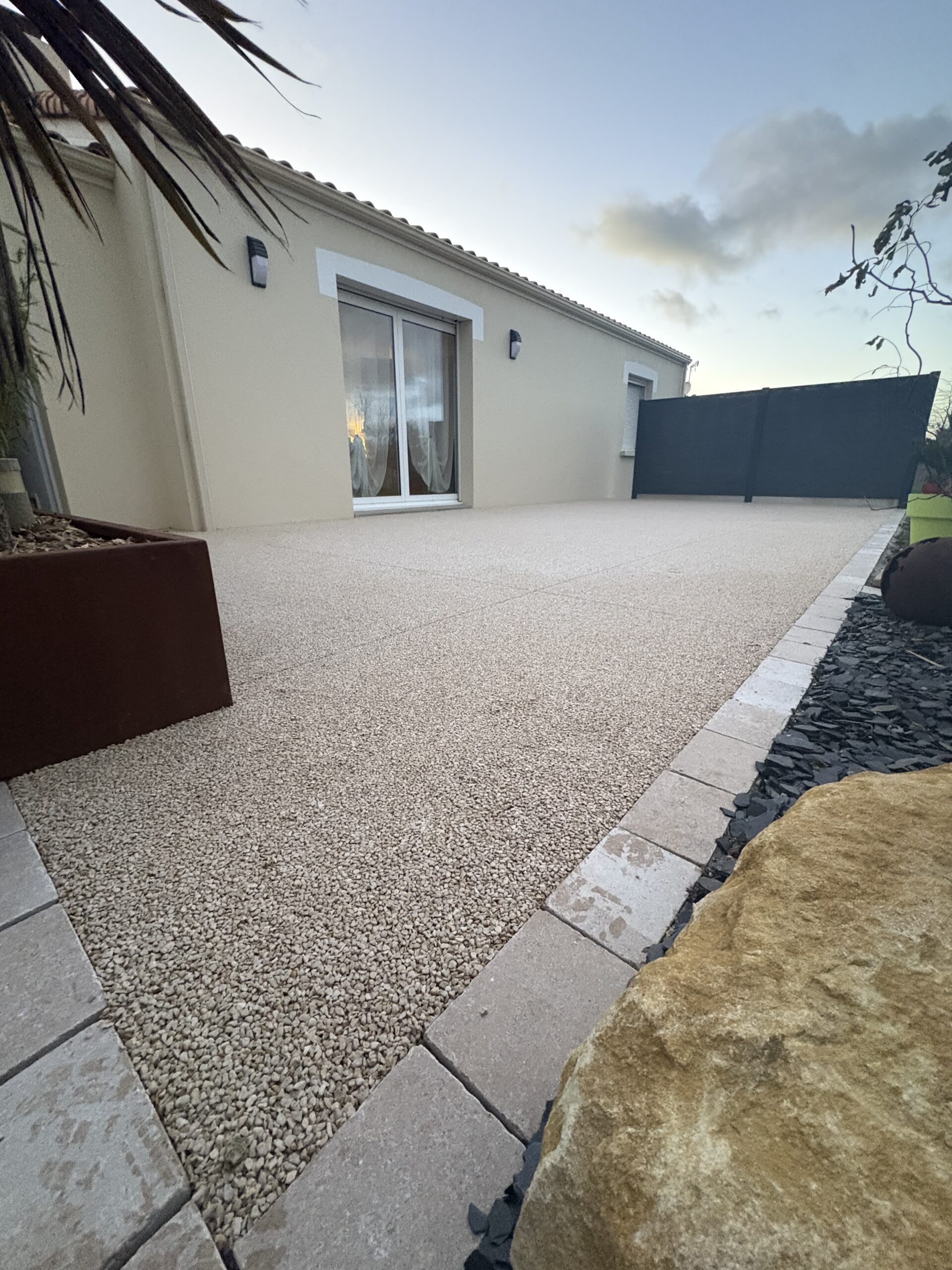 Composé d’un mélange de granulats (issus de carrières françaises) et d’un liant, Hydro’way offre un rendu esthétique à votre extérieur tout en étant fonctionnel. Cette solution s’adapte parfaitement à vos besoins et à ceux de la nature tout en laissant passer l’eau. Ce type de sol étant carrossable, les véhicules de 26 tonnes peuvent y circuler sans problème.
