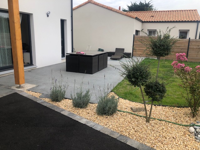 St Brévin - Terrasse en béton drainant gris avec espaces plantations